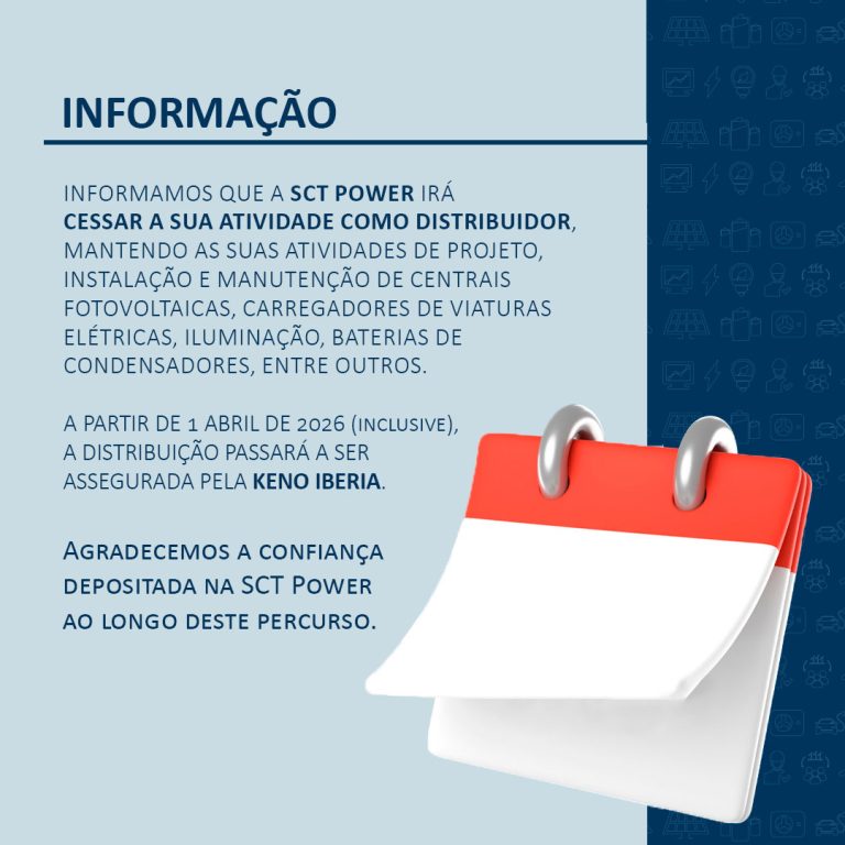 Informamos que a SCT Power irá cessar a sua atividade como distribuidor.
