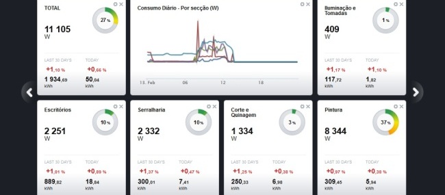 Conheça em tempo real: As tensões simples ou compostas em cada linha (V) As intensidades de corrente em cada linha (A) As potências (W, VA, VAr) O fator de potência (Cos φ) Carga total de uma instalação, quadro, … (%) O…